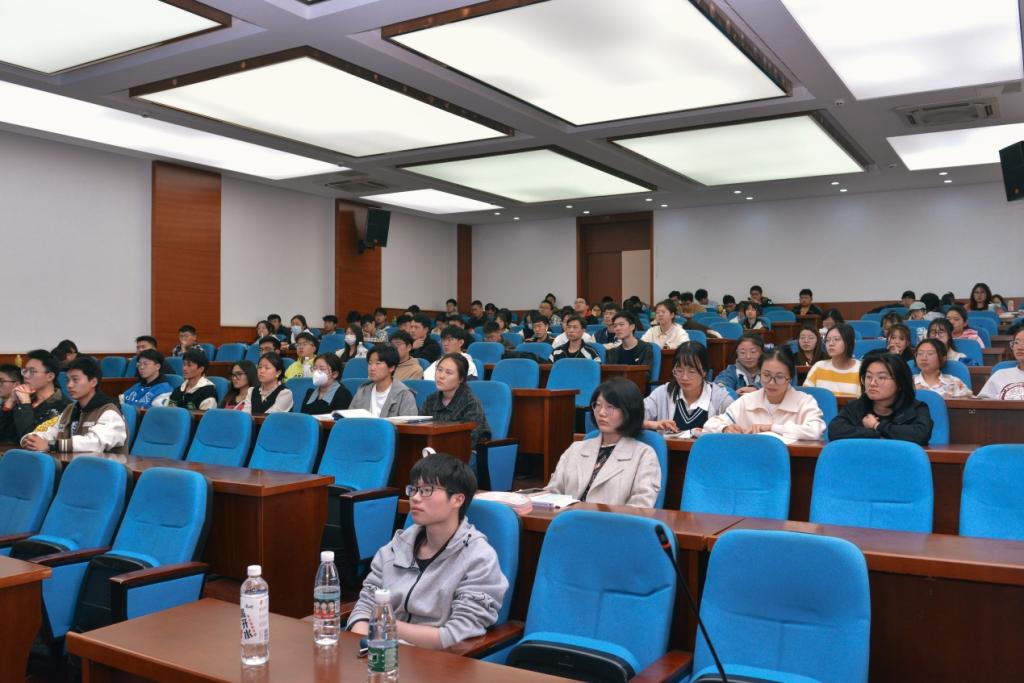 副院长钱飞跃主持,刘润东老师主讲,全校多个学院的大学生参加。