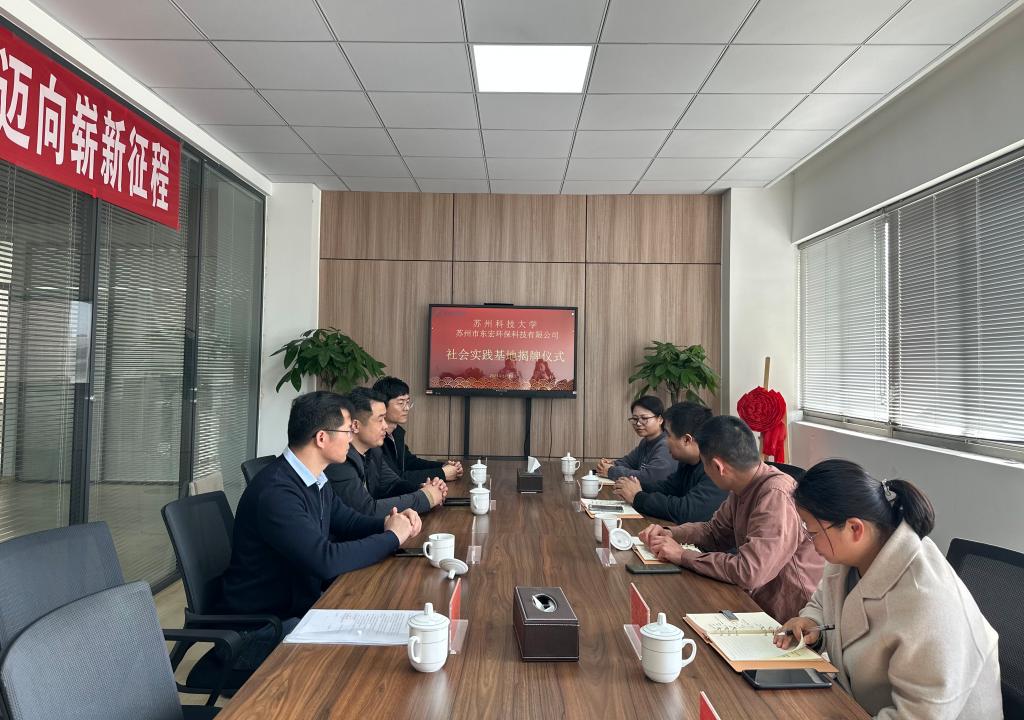 苏州市东宏环保科技有限公司总经理吴晓东、顾问部经理赵兵、咨询部经理方云等共同出席了此次仪式。任云高介绍了学院学科、专业建设以及人才培养等方面的情况,着重说明了22届毕业生目前的就业状况。吴晓东介绍了公司业务版块以及对人才的需求状况。双方表达了深入校企合作的意愿,希望在社会实践、就业实训等方面开展进一步合作。