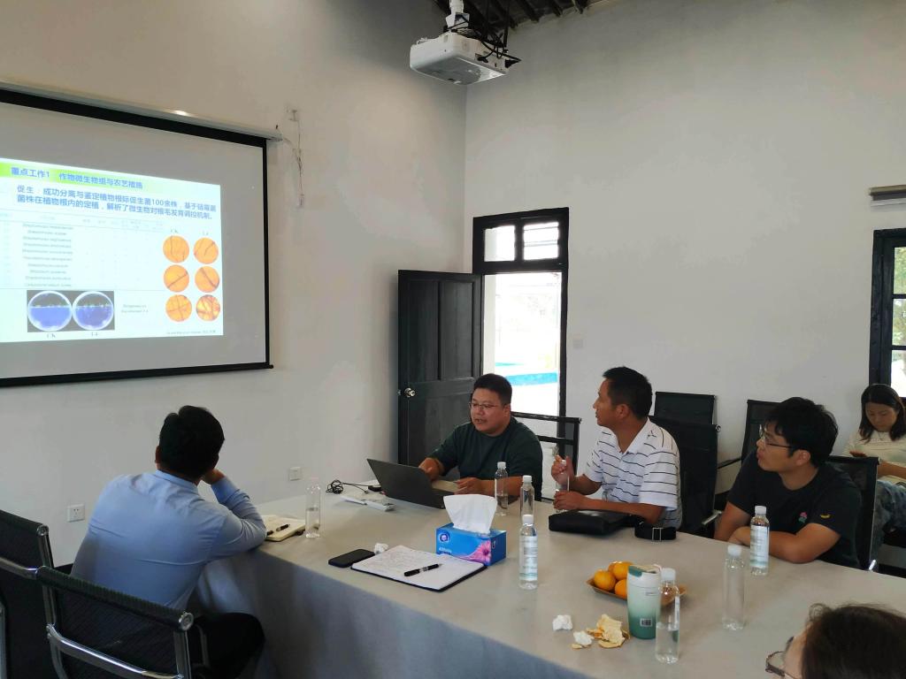 的教师代表孔令照、韩东飞、陈重军、梅娟、杨洁向产业园相关负责人介绍了自己的研究方向和成果,展示了学院在环境保护、生态修复、污染治理等领域的学术实力和科研成果。