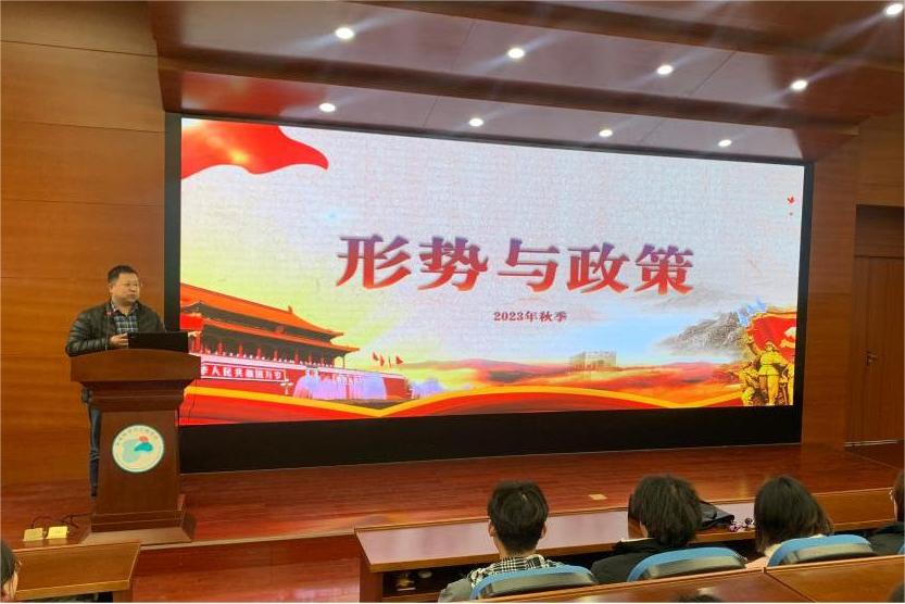 为贯彻落实好党的教育方针,建设好立德树人的关键课程,充分发挥领导干部在宣讲党的理论、路线、方针、政策上的示范带头作用,近日,环境科学与工程学院党委书记费忠民、院长李大鹏,分别以《“一带一路”倡议提出十周年:成就与展望》、《落实全球发展、安全、文明倡议,推动构建人类命运共同体》为题为本科生讲授“形势与政策”课。