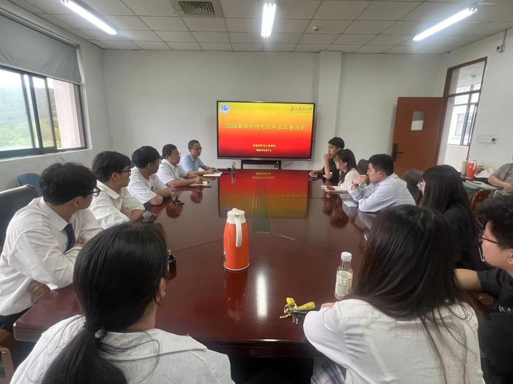 召开2024届硕士研究生毕业生座谈会,学院院长李大鹏,副书记兼副院长任云高,副院长潘杨,研究生毕业班辅导员与20位研究生毕业生代表进行面对面沟通,主要就学校管理,学生学习、生活、学术诚信等方面的问题进行深入交流。参会的各位同学都分享了自己在校期间的收获与感悟,并为学校及学院的发展进言献策。