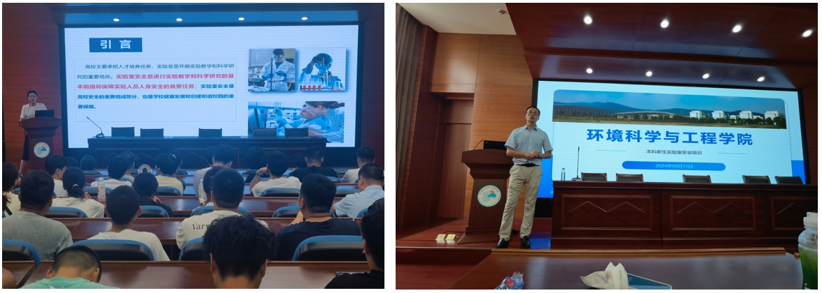 在二楼报告厅组织了新入学418名本科生的安全教育培训,培训会议由分管刘文如副院长主持,培训按建环专业、环境类专业1、环境类专业2、市政和生态专业共分四批,针对不同的专业特性,由专业实验室老师程向明、王苏琴和唐毅老师分别进行了实验室安全教育培训。培训从安全基础、安全常识、到不安全行为和违规管理等方面,给本科学生初步建立了实验室安全理念和意识。