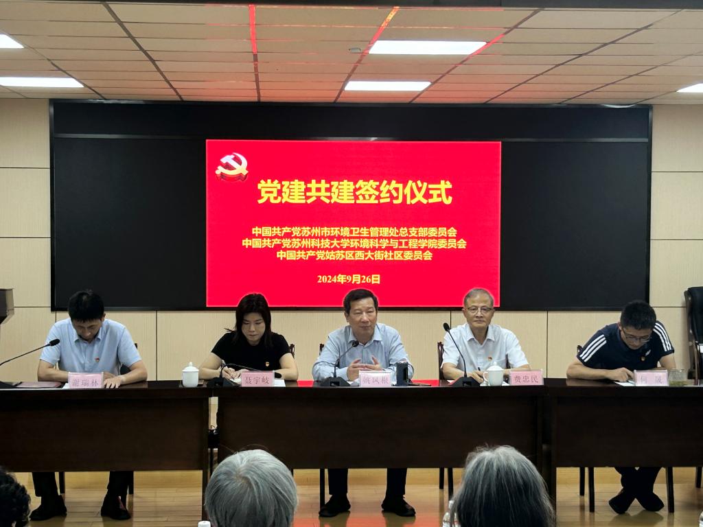与苏州市环境卫生管理处、苏州市姑苏区沧浪街道西大街社区三方共同举行党建共建签约仪式。苏州市环境卫生管理处党总支书记、处长姚凤根,苏州市姑苏区沧浪街道西大街社区党委书记聂宇岐,轻小说
