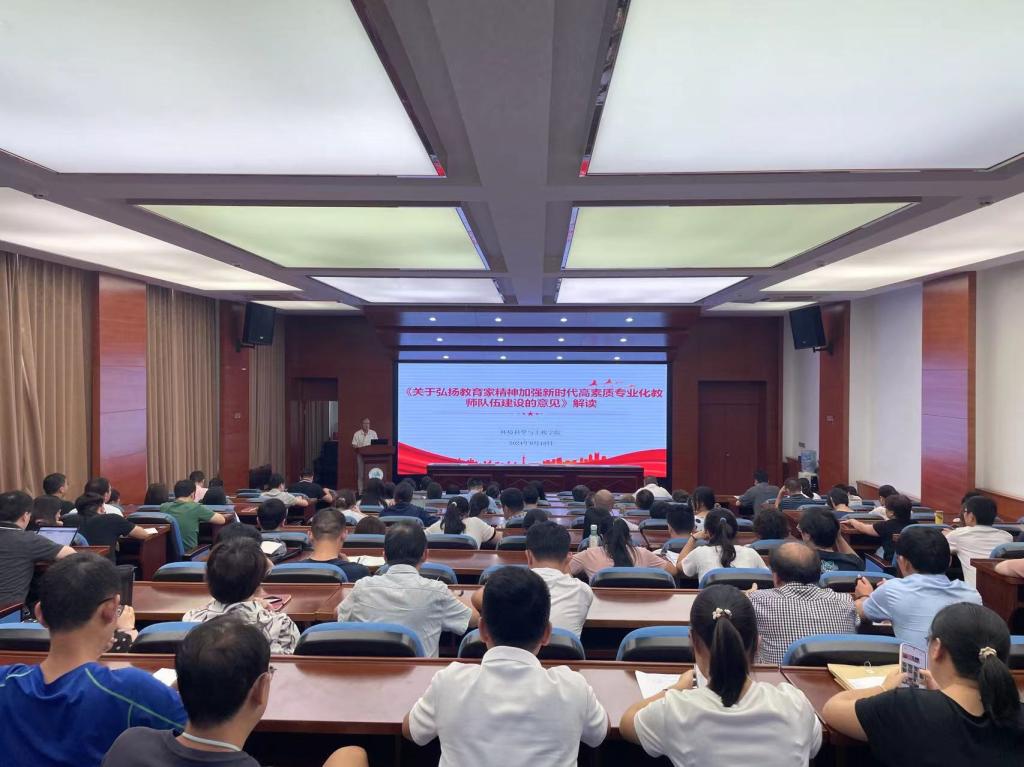 于9月18日在学院二楼报告厅举办了学习《中共中央国务院关于弘扬教育家精神加强新时代高素质专业化教师队伍建设的意见》大会。会议由学院党委书记费忠民主持,学院全体教职工参加。