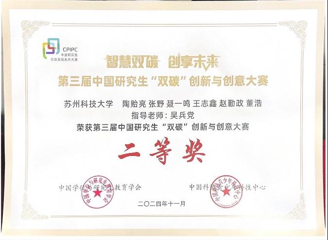 环境科学与工程学院团队凭借作品《钢渣基功能材料强化磷深度去除和资源化的低碳污水处理工艺》,在激烈竞争中脱颖而出,荣获全国二等奖。该团队由吴兵党老师指导,成员包括陶贻亮、张野、聂一鸣、王志鑫、赵勤政、董浩六位同学。