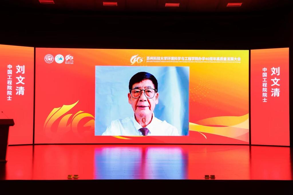 中国工程院院士刘文清通过视频致辞,向学院40周年院庆送上祝福。他肯定了学院在水污染控制、生态修复等领域取得的成果,赞扬其“知行合一、服务家国”的担当,期待学院结合“双碳”目标培养创新人才,续写绿色发展新篇章。