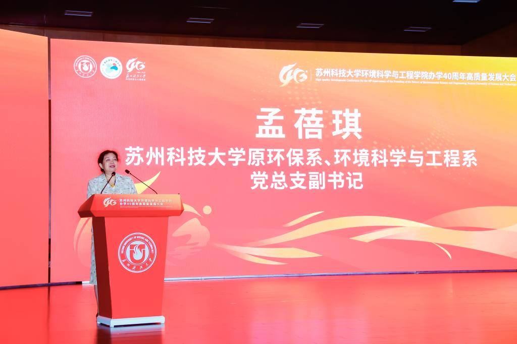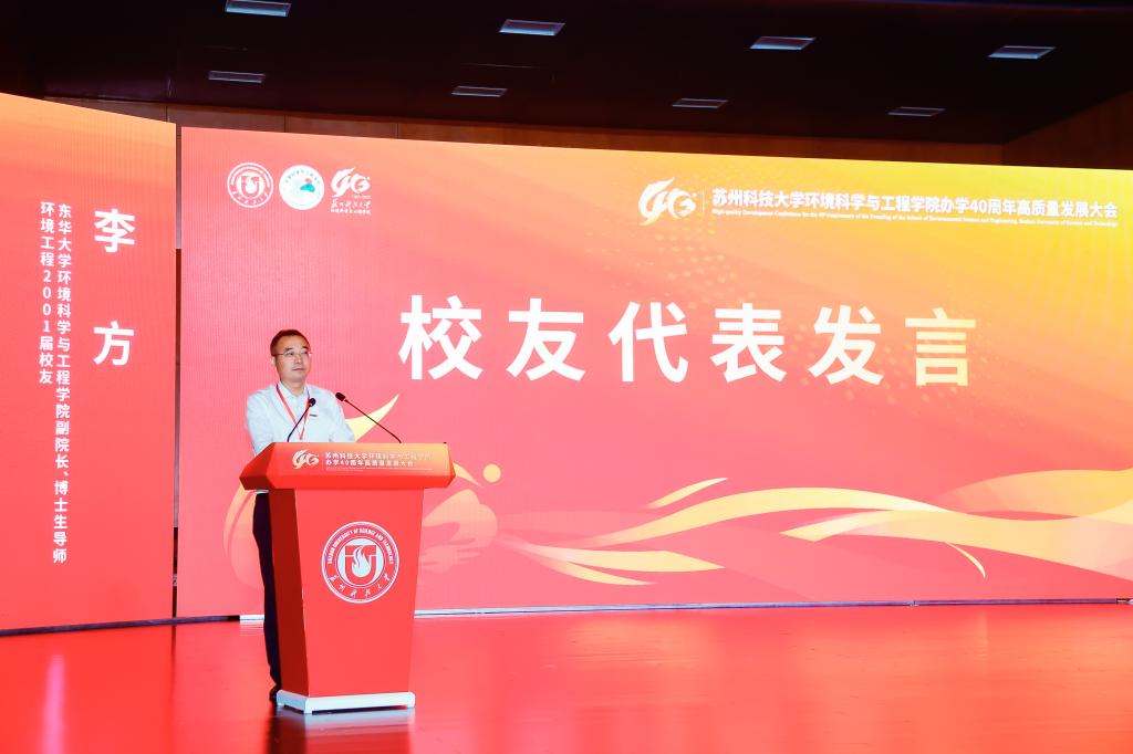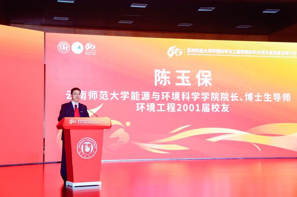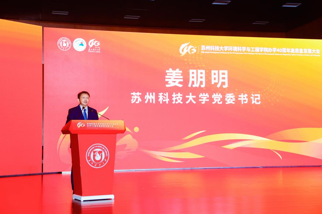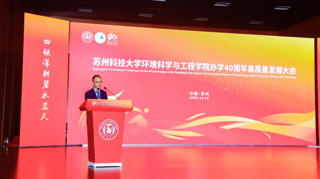 办学40周年表示热烈祝贺。他指出,学院从苏州城建环保学院环境保护系起步,至今已培养13000余名环保人才,新时代更实现学科跨越式发展——环境科学与工程学科获批一级学科博士点、入选省优势学科,“环境生态学”进入ESI全球前5‰,建成学校首个国家级科研平台,并为120余个“一带一路”国家培养2100余名环保人才,彰显“创业敬业团结进取”的苏科大精神。他表示,学校将在学科、人才、平台建设上为学院提供保障,希望学院以四十年积淀为基,在服务国家战略与区域发展中展现更大担当、实现更大作为。