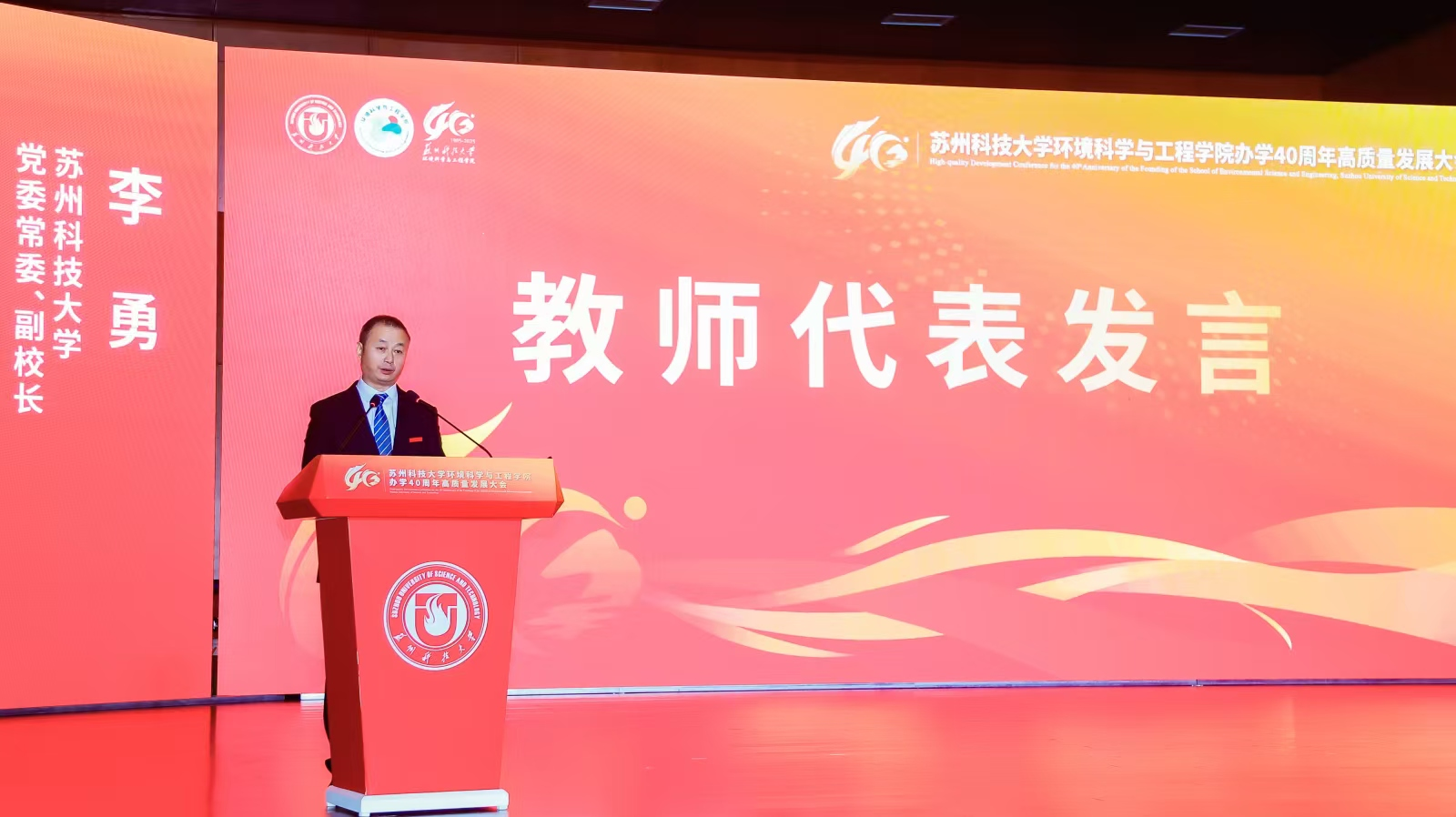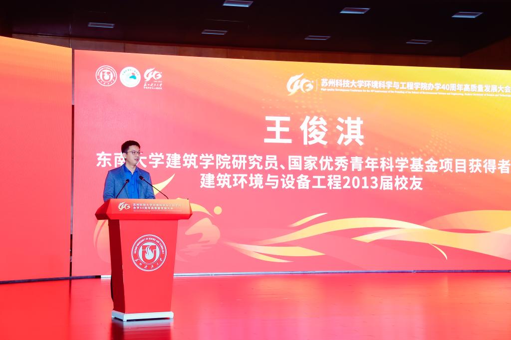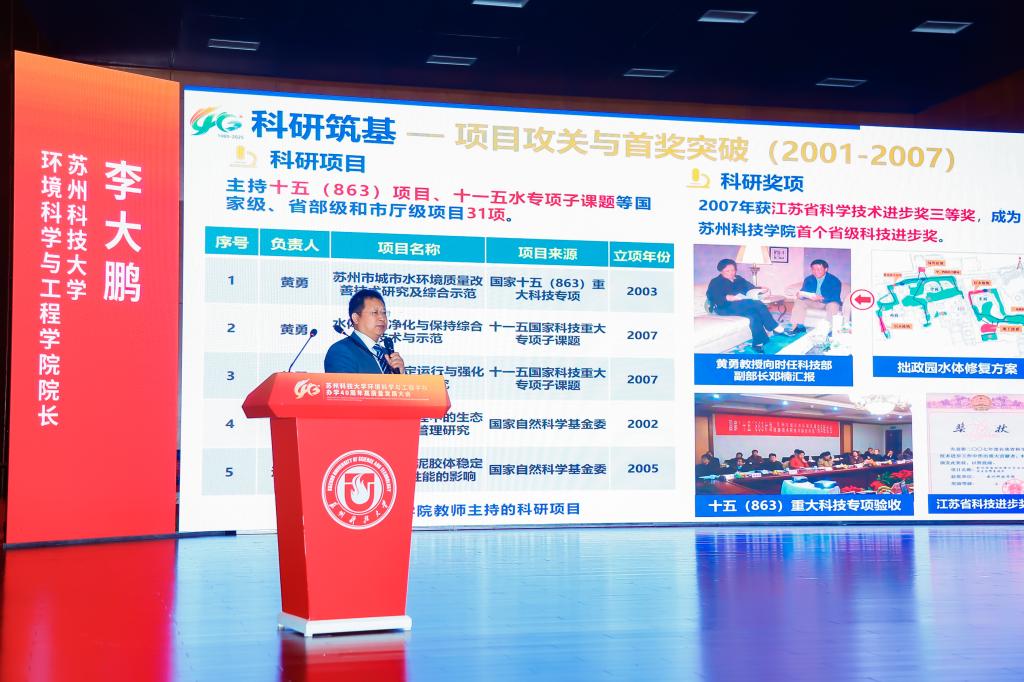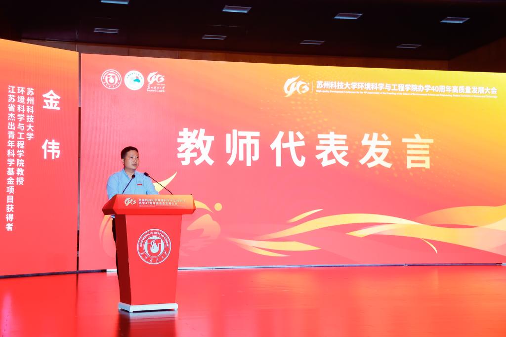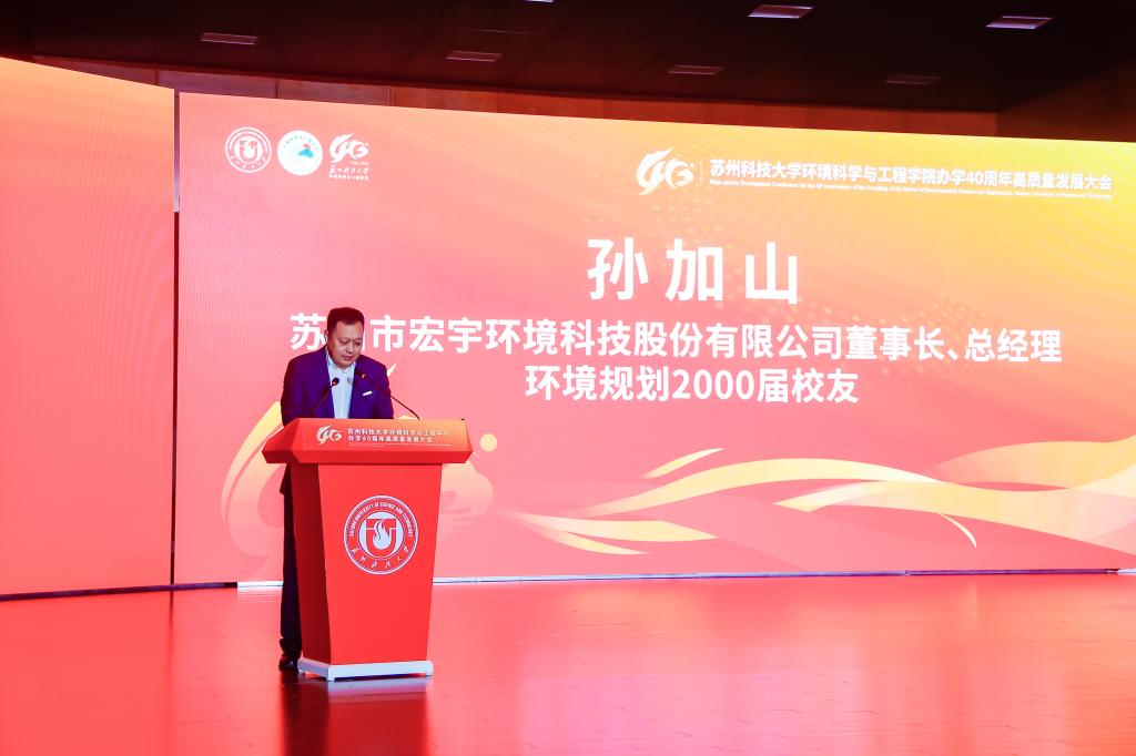 办学40周年表示热烈祝贺。他指出,学院从苏州城建环保学院环境保护系起步,至今已培养13000余名环保人才,新时代更实现学科跨越式发展——环境科学与工程学科获批一级学科博士点、入选省优势学科,“环境生态学”进入ESI全球前5‰,建成学校首个国家级科研平台,并为120余个“一带一路”国家培养2100余名环保人才,彰显“创业敬业团结进取”的苏科大精神。他表示,学校将在学科、人才、平台建设上为学院提供保障,希望学院以四十年积淀为基,在服务国家战略与区域发展中展现更大担当、实现更大作为。