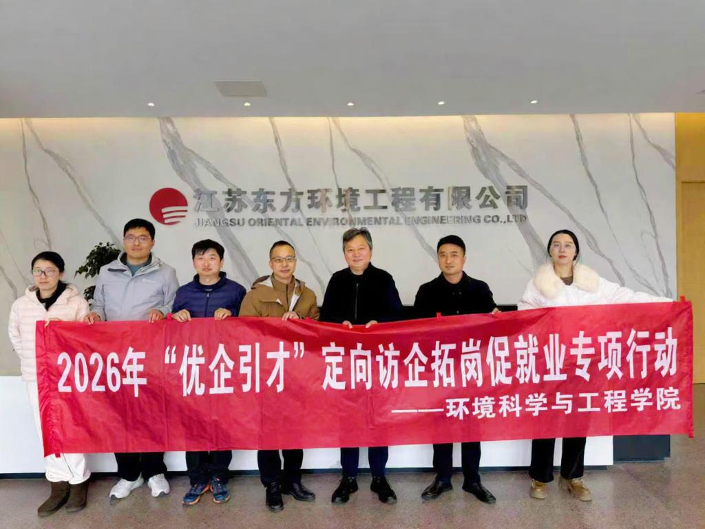 为进一步深化校企协同育人机制,精准对接企业人才需求,3月3日,环境科学与工程学院党委书记潘杨、党委副书记顾银君带队赴苏州市东方环境工程有限公司开展“优企引才”定向访企拓岗促就业专项行动。