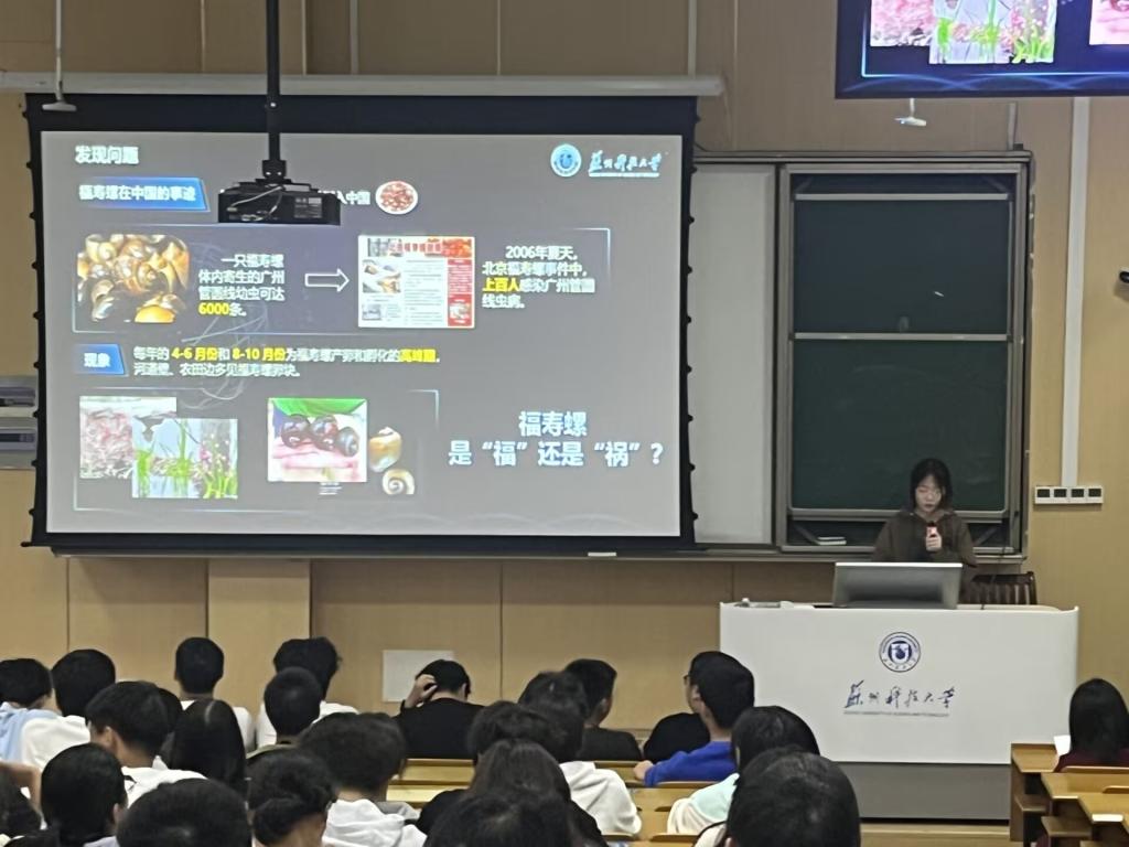 随后,刘老师团队的周丽芬和梁馨淇从研究背景、研究目的、研究内容、技术路线、研究进展等方面分享了在竞赛中的经历,并结合具体事例,为新生生动展示了一个竞赛项目的完成过程。