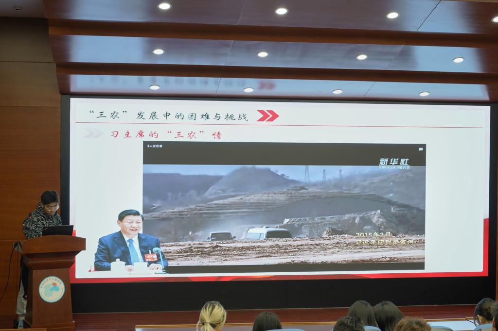 重农固本,国之大纲。主讲人张宸深刻阐述了“三农”问题的核心与宗旨,从“‘三农’发展中的困难与挑战”、“粮食和重要农产品供给充足”、“宜居宜业和美乡村加快建设”、“农民增收致富渠道拓宽”四个维度,详细论述了确保国家粮食安全的各项措施以及推动我国乡村新气象的一系列政策,这些举措和政策促进了农村基础设施的持续升级、人居环境的持续改善和公共服务水平的持续提升。在这次学习中,同学们全神贯注地聆听,积极参与讨论,相互交流心得,深刻理解到自党的十八大以来,“三农”问题一直是全党工作的重中之重。