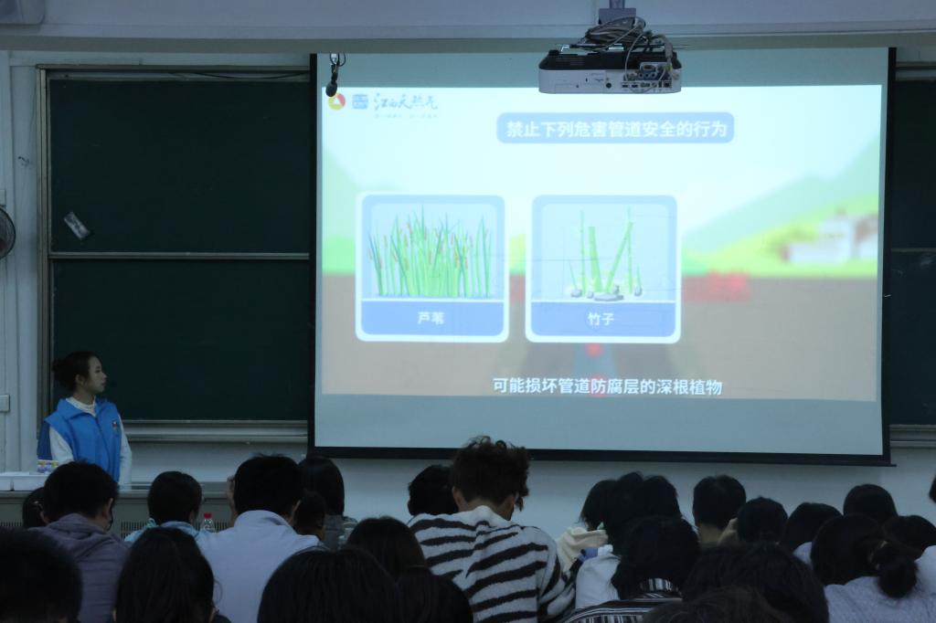 活动过程中,“毅守管固,力庇童安”服务队就管道保护和急救方法两方面进行了全面细致的讲解。通过图文结合的形式,向同学们普及了急救药品和急救措施等相关科学知识。通过生动的案例讲解,使同学们更加深刻地了解管道保护的重要性和燃气泄露的严重后果。