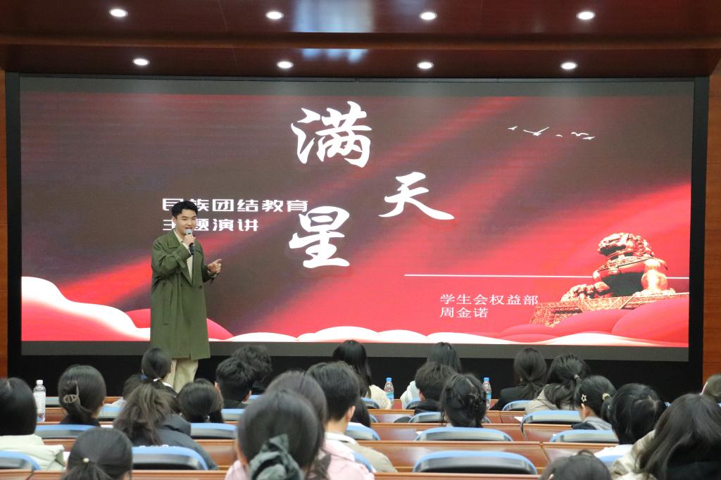 团委于11月29日在环境楼报告厅举办“民族团结,籽籽同心”主题演讲比赛。本次比赛邀请乐仪思辨社社长陈海啸、校社团联合会社团管理部部长邱信羽、轻小说