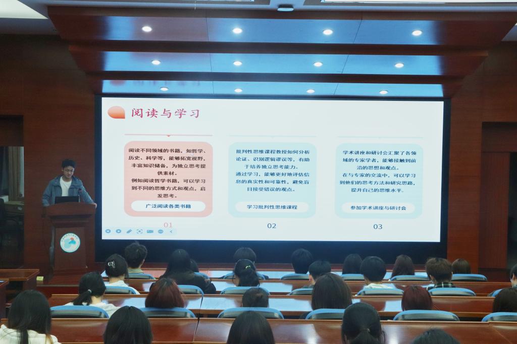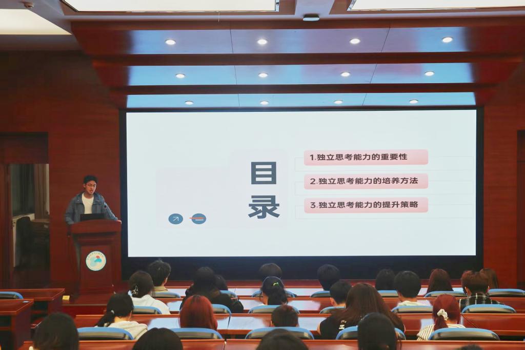开场时,陈哲磊深刻阐述了独立思考能力的重要性,指出独立思考是个人成长的核心驱动力,它不仅有助于学生会成员们在面对复杂的校园活动策划、学生问题处理时做出明智决策,还能提升整个团队的创新能力和解决问题的能力,使学生会在服务同学的过程中更具针对性和实效性。