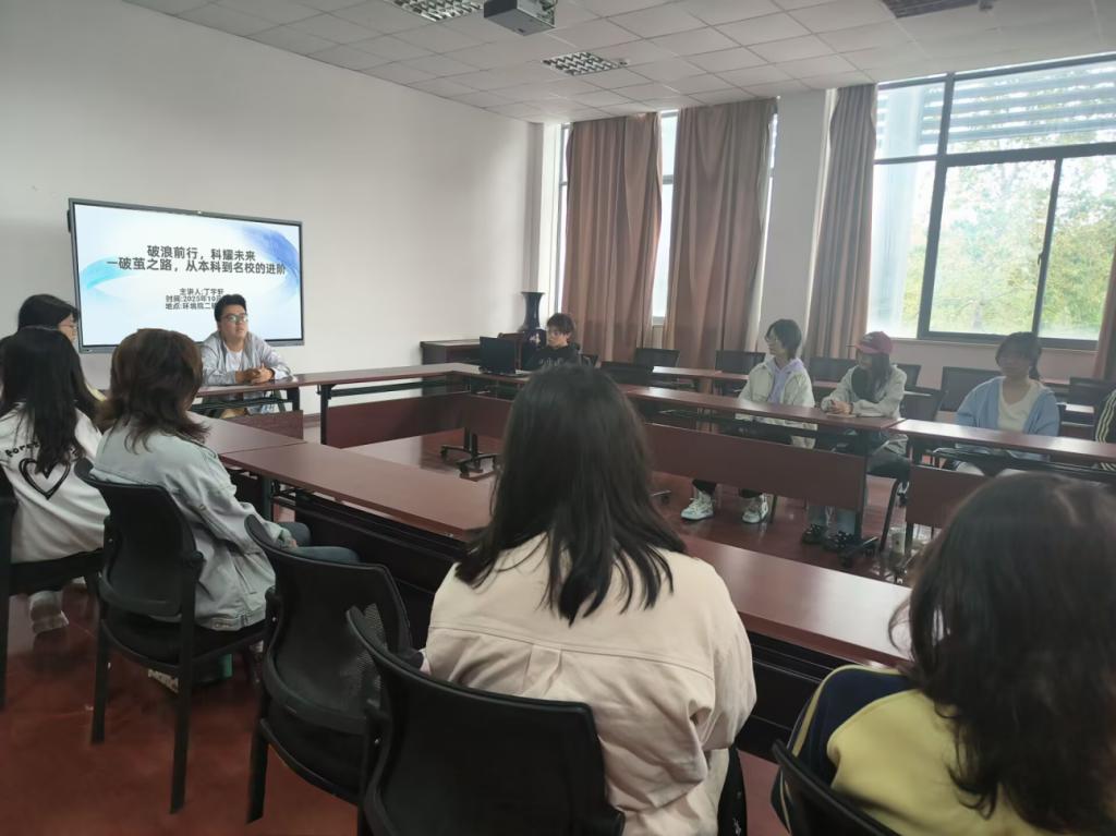 丁宇轩简短自我介绍后,围绕保研经历、科研竞赛经验及推免面试要点展开分享,还针对大学四年各阶段规划给出详细建议;互动提问环节,同学们围绕专硕与学硕区别、就业规划、跨专业考研等问题提问,学长结合自身经验细致解答,为有科研或推免意向的同学提供了前瞻性指导。