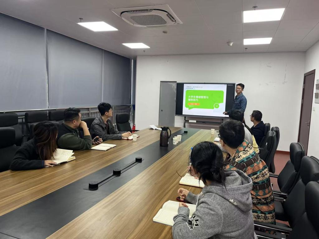 学工召开2024年第一期辅导员沙龙,主题为“大学生情绪管理与辅导技巧”,冯哲担任主讲人。