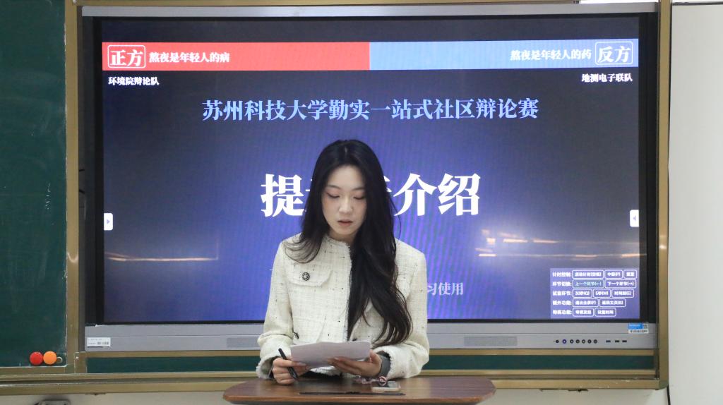 代表队与地理科学与测绘工程学院、电子信息工程学院联合代表队,围绕“熬夜是年轻人的病/药”这一极具现实意义的辩题展开深入探讨。正方代表队聚焦身心健康维度,从生理损伤、心理压力等方面切入,结合科学研究与生活实例,论证了熬夜对年轻人身体机能、精神状态的多重负面影响,明确主张熬夜是危害健康的“病”;反方代表队则紧扣当下青年的精神需求,提出在快节奏生活与自我意义感探索的过程中,熬夜时段往往成为年轻人专属的独处空间,能够帮助他们释放压力、专注热爱、找回自我,因此可称之为支撑心灵的“药”。双方选手旁征博引、分析透彻,辩论过程层层递进、精彩纷呈,展现了青年学生对生活习惯、健康理念与精神追求的多元思考。