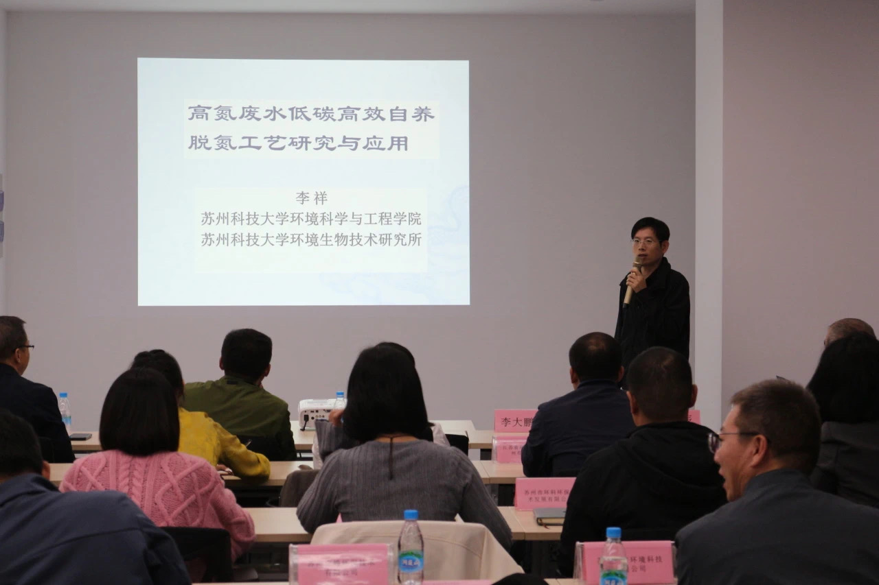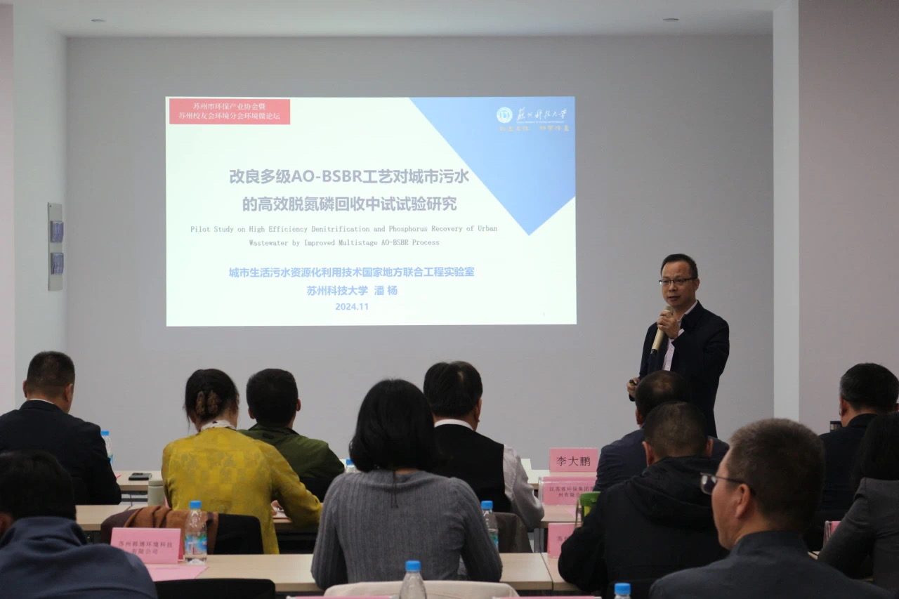 副院长潘杨介绍了改良多级AO-BSBR工艺对城市污水的高效脱氮磷回收中试试验研究,苏州市环保产业协会土壤调查与修复专业委员会、苏州市宏宇环境科技股份有限公司土壤咨询事业部总经理张斌介绍了污染土壤修复工厂的模式探讨与运营经验。