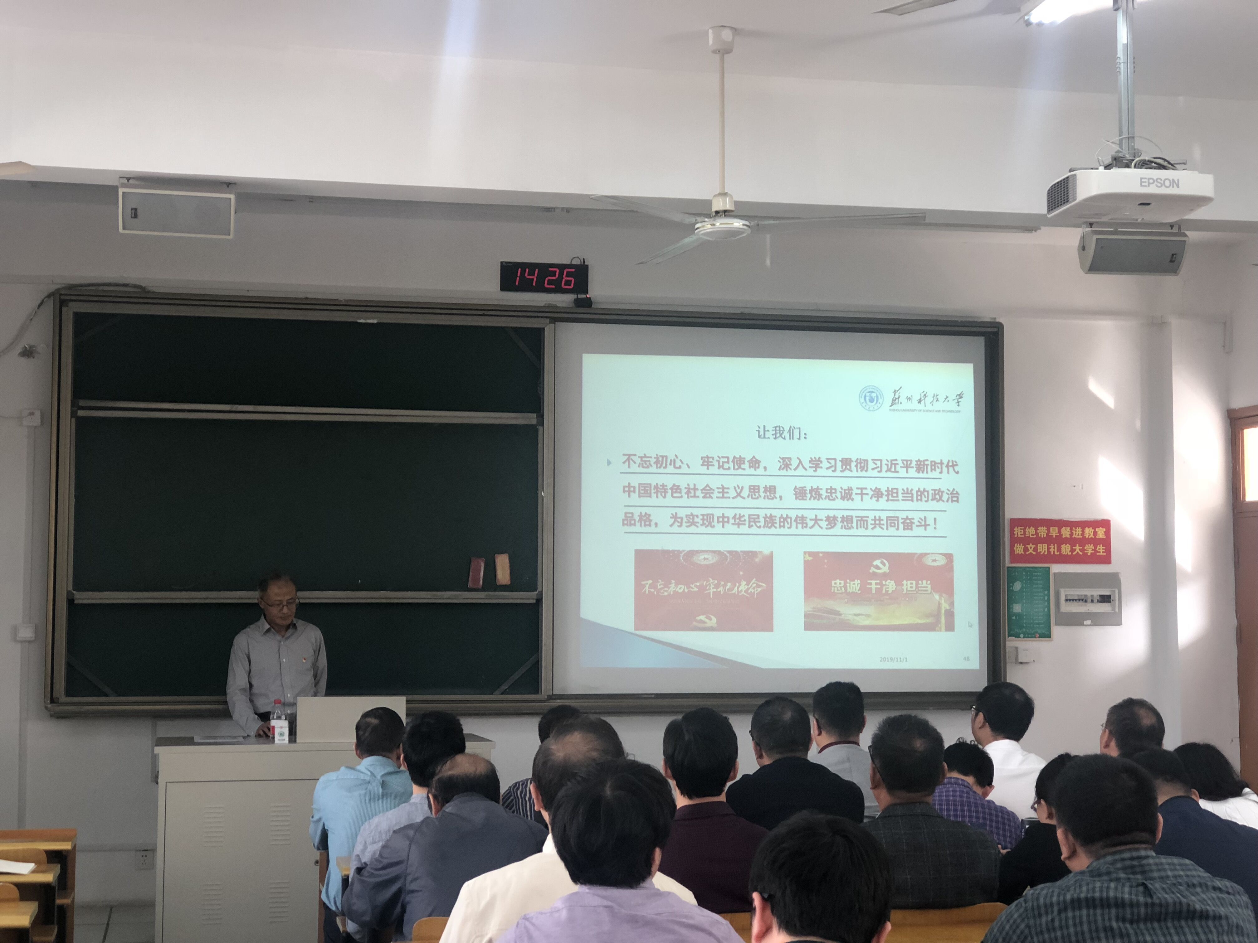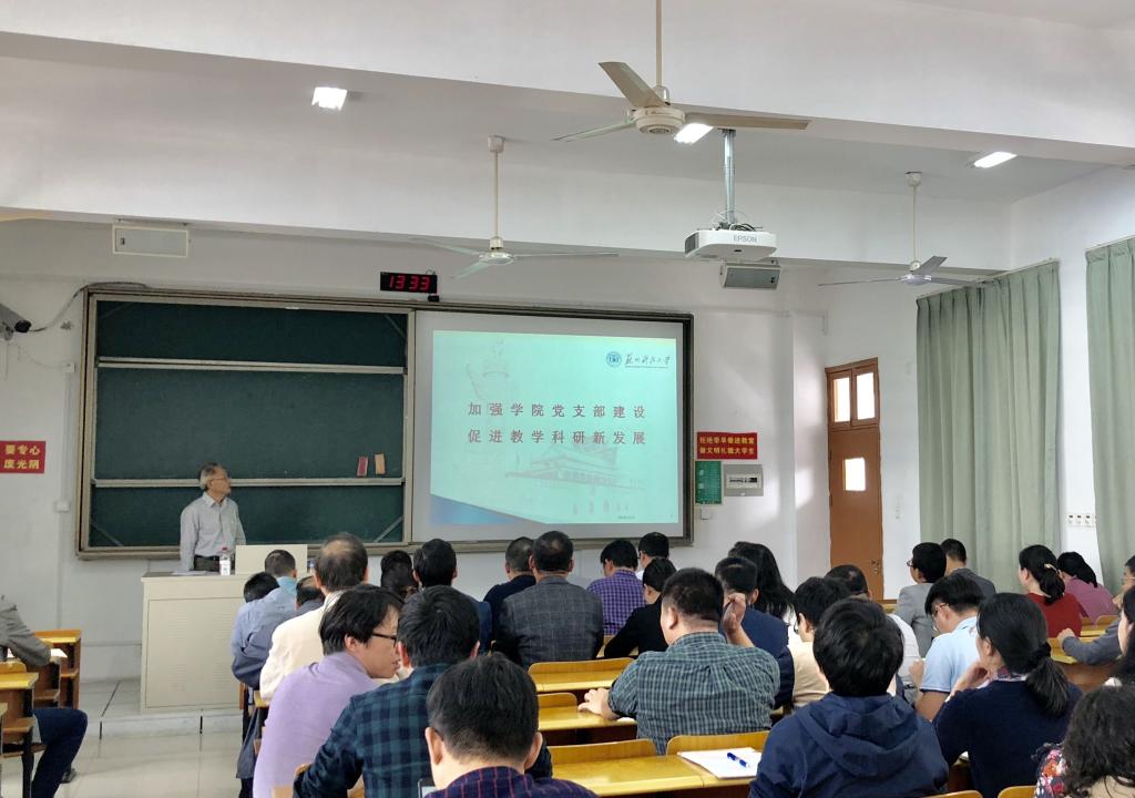 党委书记费忠民结合主题教育调研成果,于11月1日下午在C6-312为学院全体教职工党员上了一堂题为《加强学院党支部建设,促进教学科研新发展》的党课。
