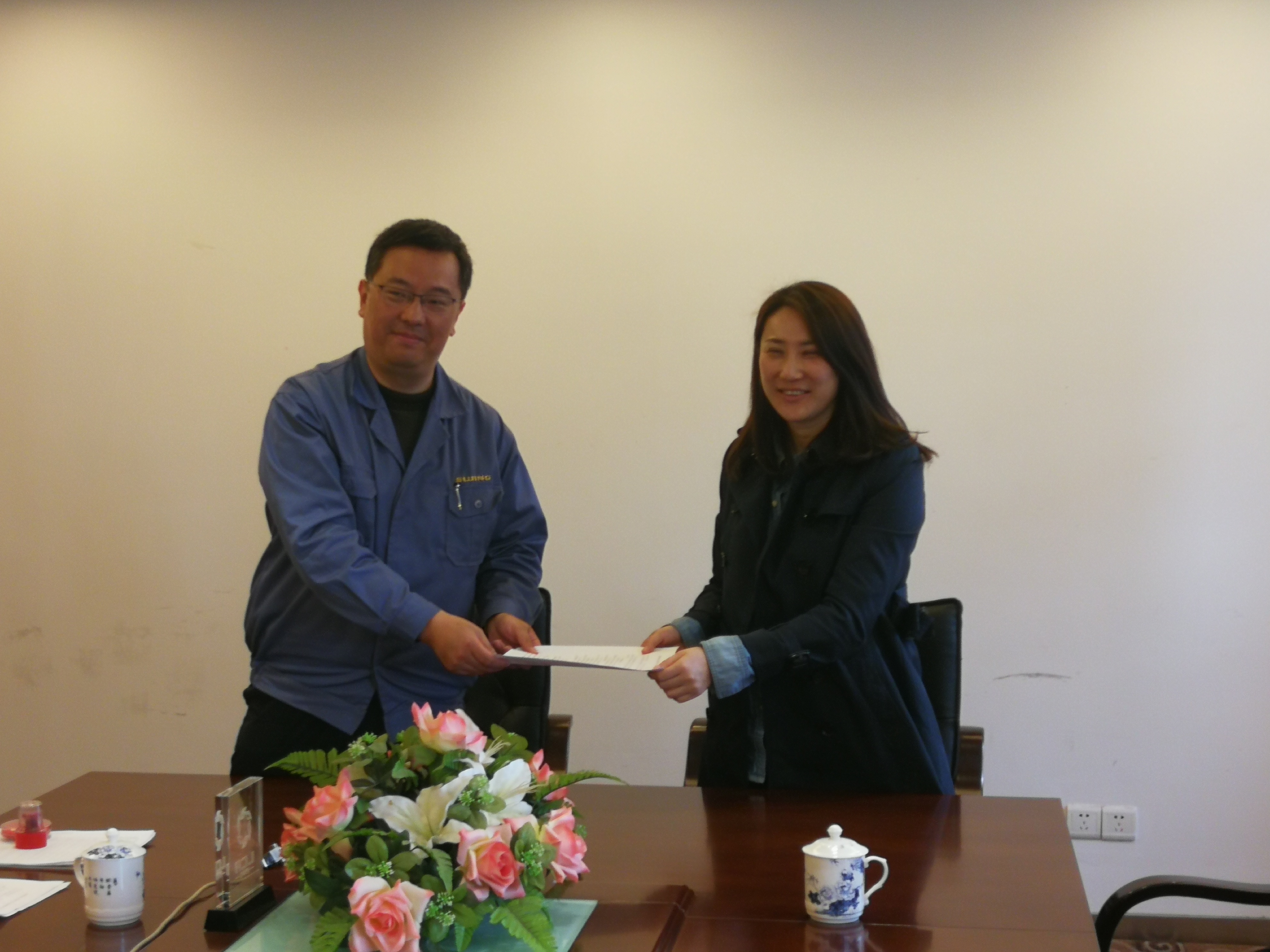 张菡副书记和吴强副总经理代表双方在校企合作协议书上签字,并一起为实践教学基地揭牌。希望该基地成为连接学校和企业的纽带,实现学生、学校和企业的三方共赢。