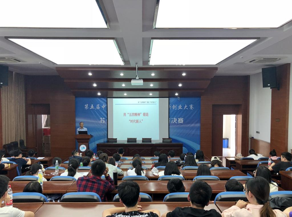 报告厅为环境工程1711班和人文地理1712班的学生讲授“形势与政策”课,课程主题为“用‘五四精神’锻造‘时代新人’”。