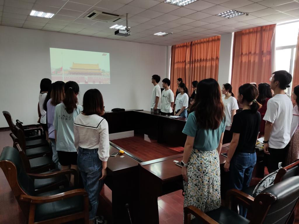 习近平总书记在大会上代表党和人民庄严宣告:“中华民族迎来了从站起来、富起来到强起来的伟大飞跃,实现中华民族伟大复兴进入了不可逆转的历史进程!。”一面红旗映照初心,大会上,学院全体党员全体起立合唱国歌,大家心情激动地观看大会盛况,表达了对建党100周年的衷心祝愿。