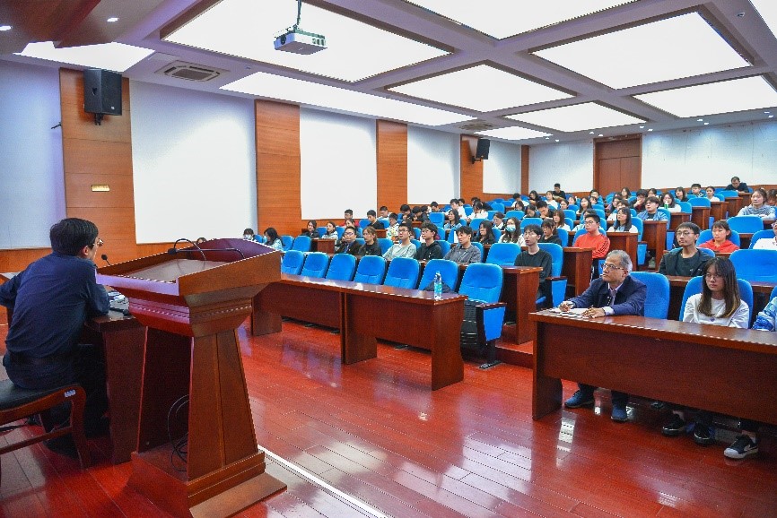 苏州市生态环境局管祥武主任为在校生介绍打好污染防治攻坚战相关情况